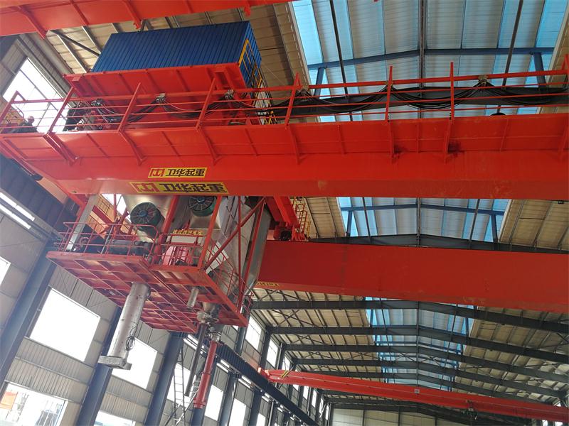 焙燒多功能起重機是指具有真空物料輸送系統、除塵降溫系統、陽極炭塊夾鉗裝置的專用起重機,是服務于陽極炭塊焙燒過程的工藝線專用起重機,即是陽極炭塊焙燒爐的專用操作設備。